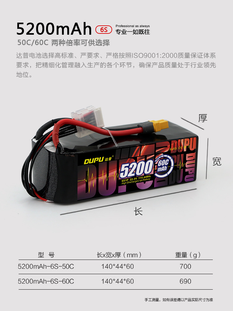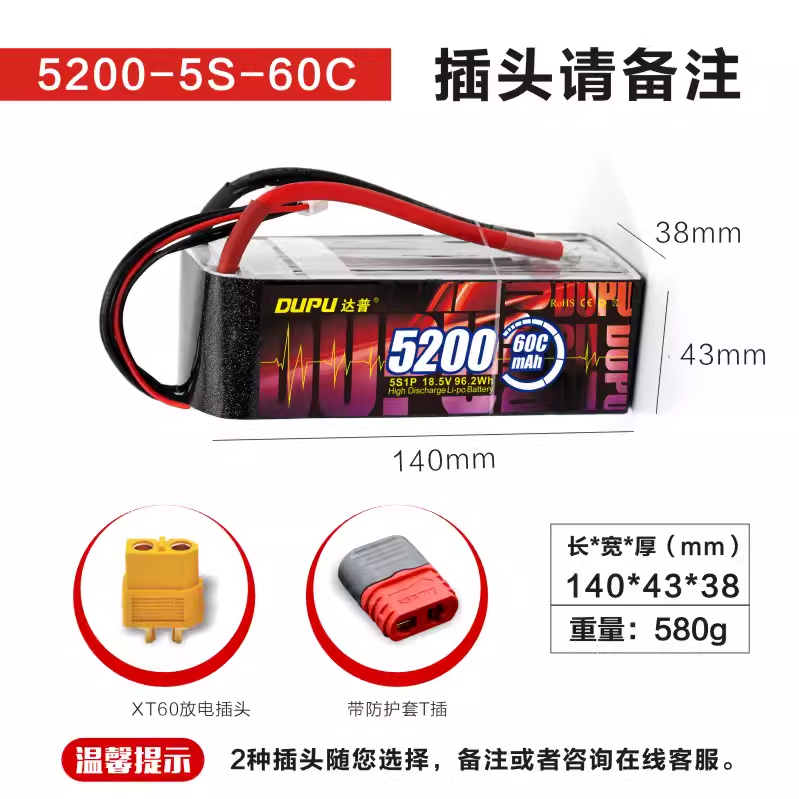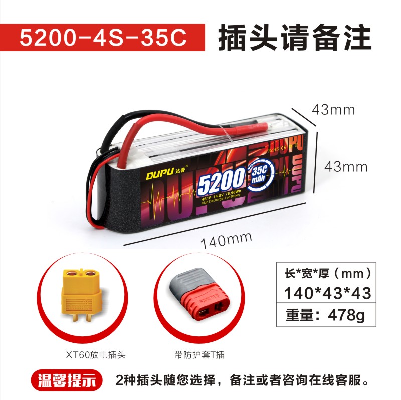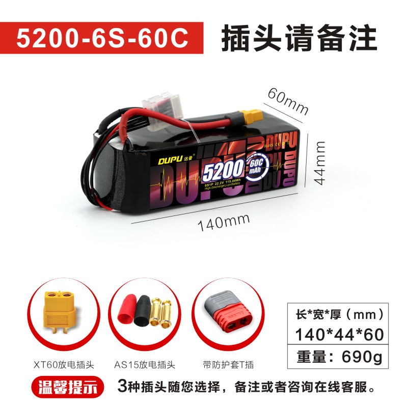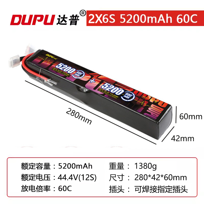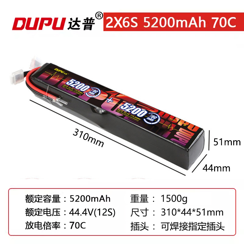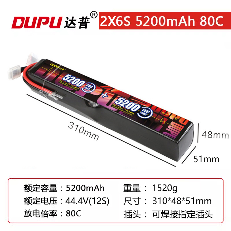 ​12S 6S 5S 4S 3S 5200mAh 80C 70C 60C 35C 44.4V 22.2V 14.8V 11.1V 可(kě)焊接指定插頭